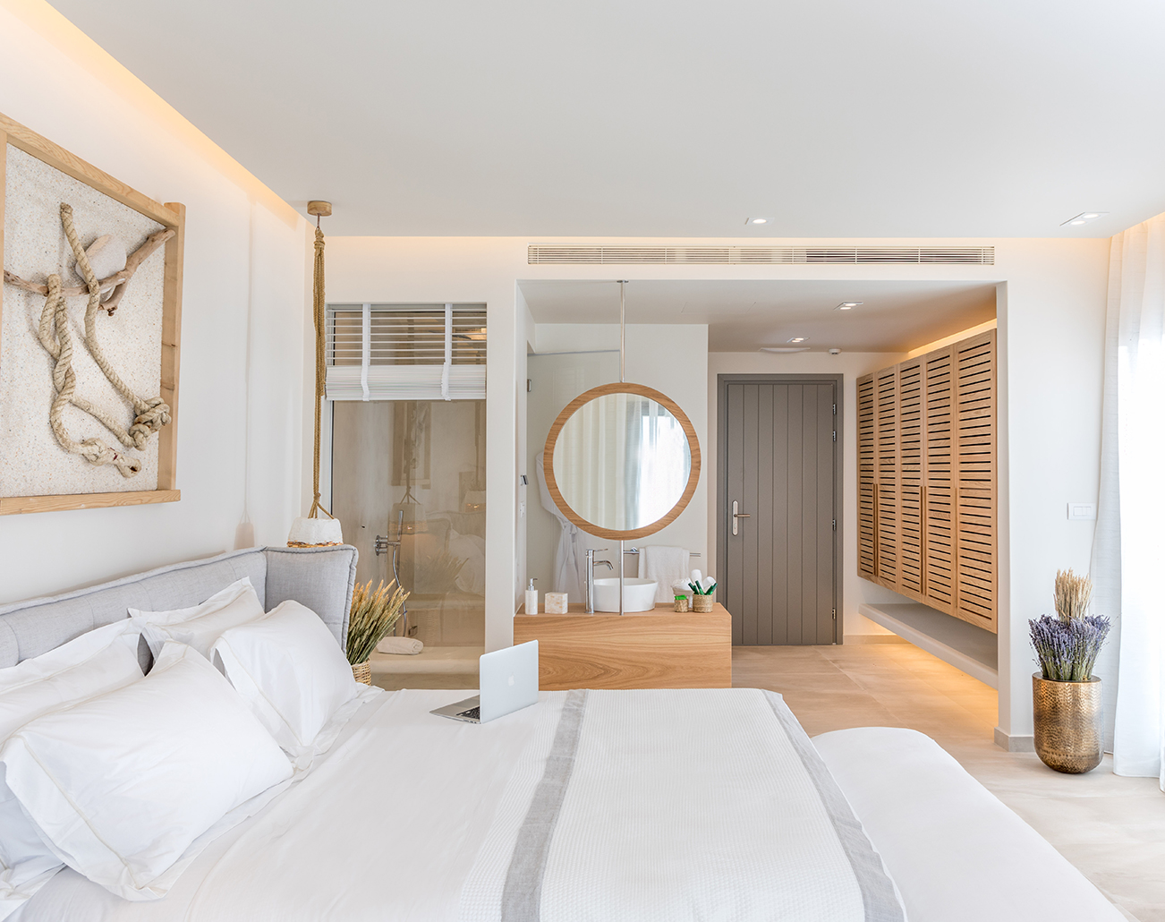 Βασιζόμενοι στην αρχιτεκτονική μελέτη του αρχιτεκτονικού γραφείου c.konstantinou design, που σχεδίασε το boutique ξενοδοχείο στη Νάξο ώστε να εναρμονίζεται πλήρως με το νησιώτικο περιβάλλον, δημιουργήσαμε μοναδικά έπιπλα για τα δωμάτια του πολυτελούς ξενοδοχείου.